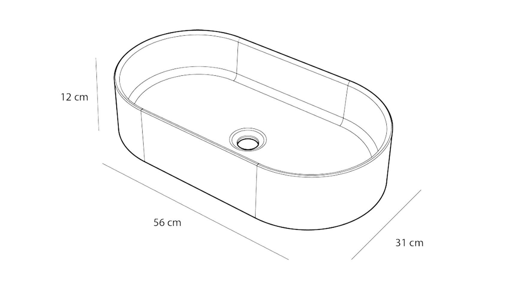 Cuba de sobrepor com linhas suaves e bordas arredondadas.