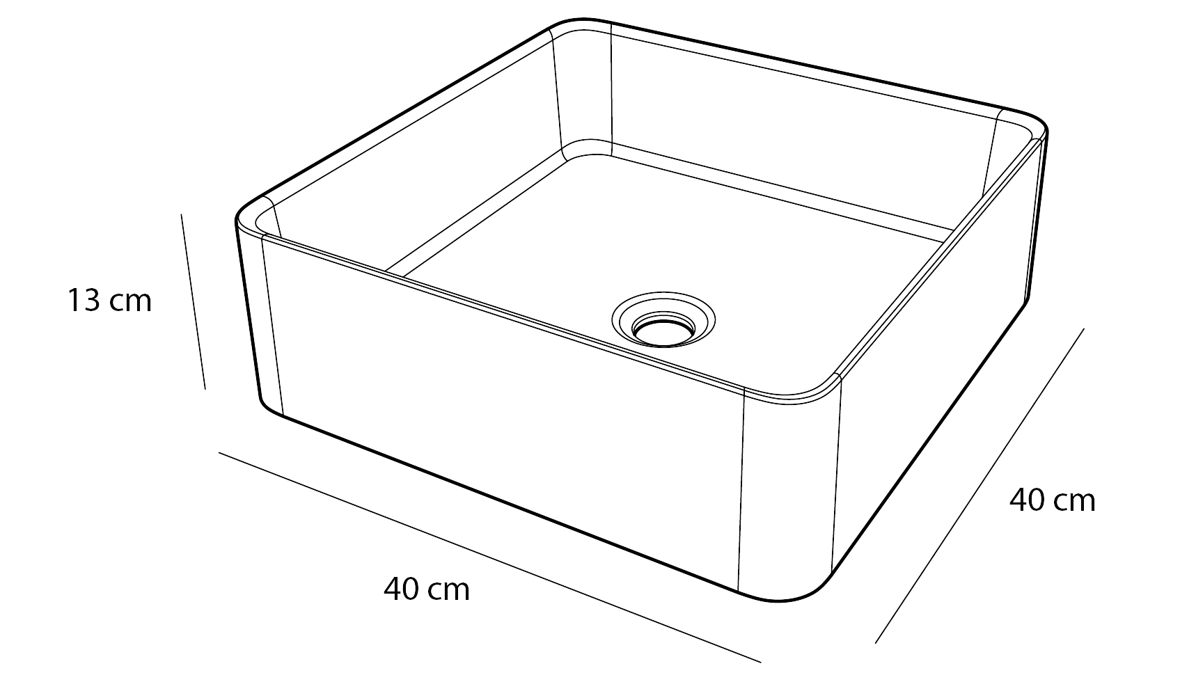 Cuba de sobrepor com linhas suaves e bordas arredondadas.
